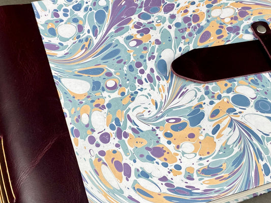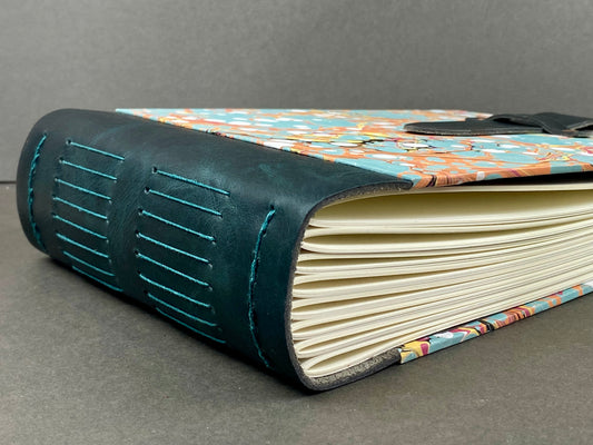The exterior of the sketchbook is high quality leather with beautiful olive coloring. Kris hand makes these books and her attention to detail is obvious. Her prompt and courteous service, artistry and professionalism are all reasons Kris is a joy to work with.