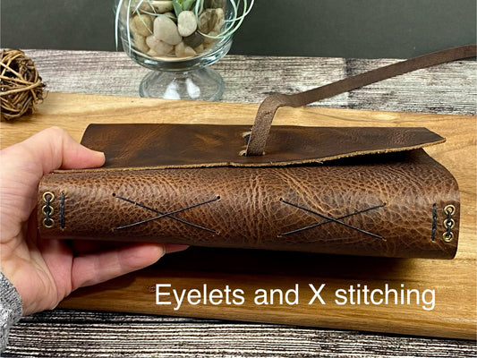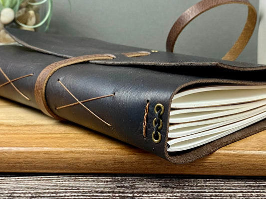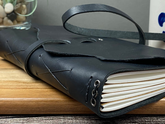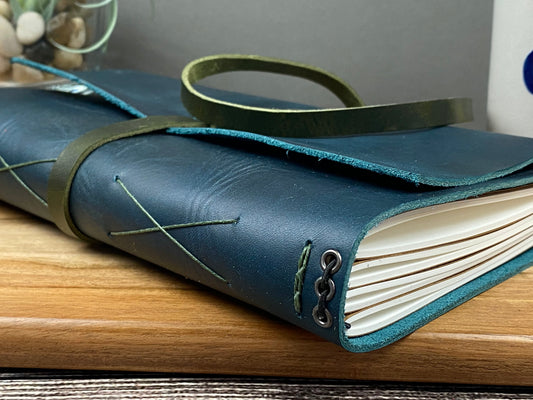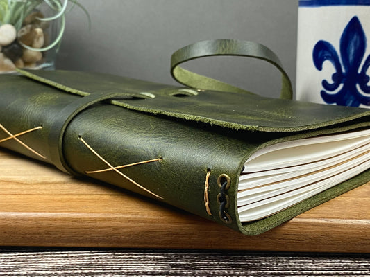The exterior of the sketchbook is high quality leather with beautiful olive coloring. Kris hand makes these books and her attention to detail is obvious. Her prompt and courteous service, artistry and professionalism are all reasons Kris is a joy to work with.