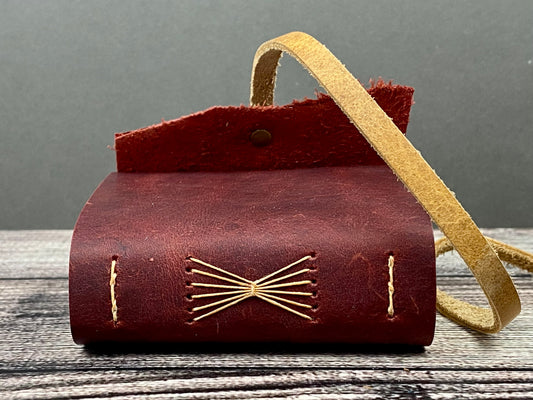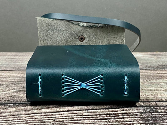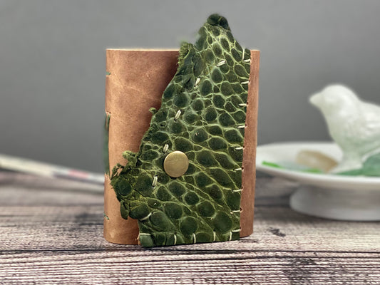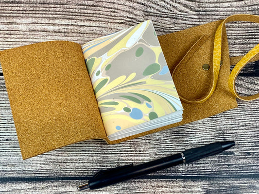 The exterior of the sketchbook is high quality leather with beautiful olive coloring. Kris hand makes these books and her attention to detail is obvious. Her prompt and courteous service, artistry and professionalism are all reasons Kris is a joy to work with.