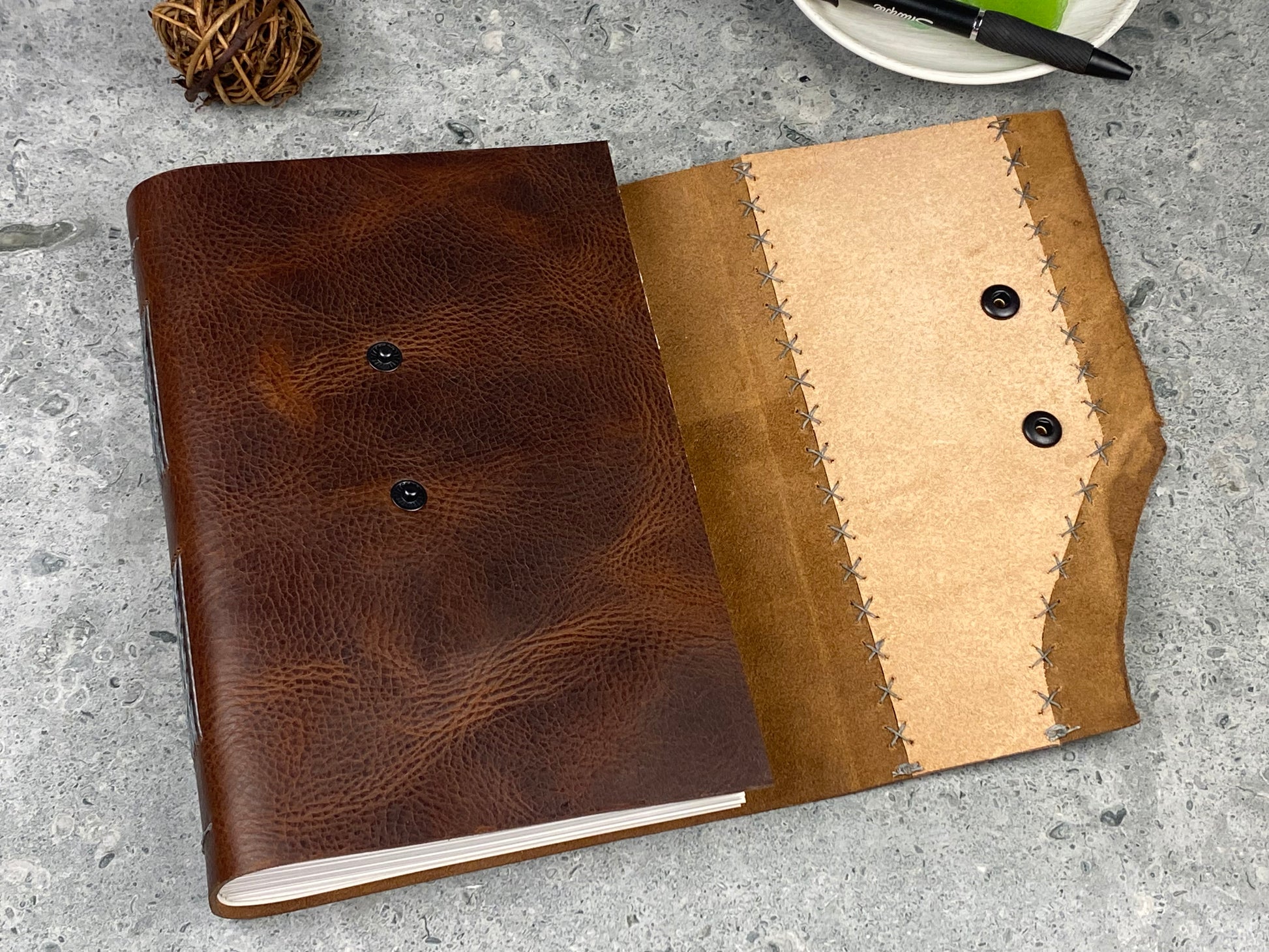 Large Marbled Leather Journal - Walnut Brown