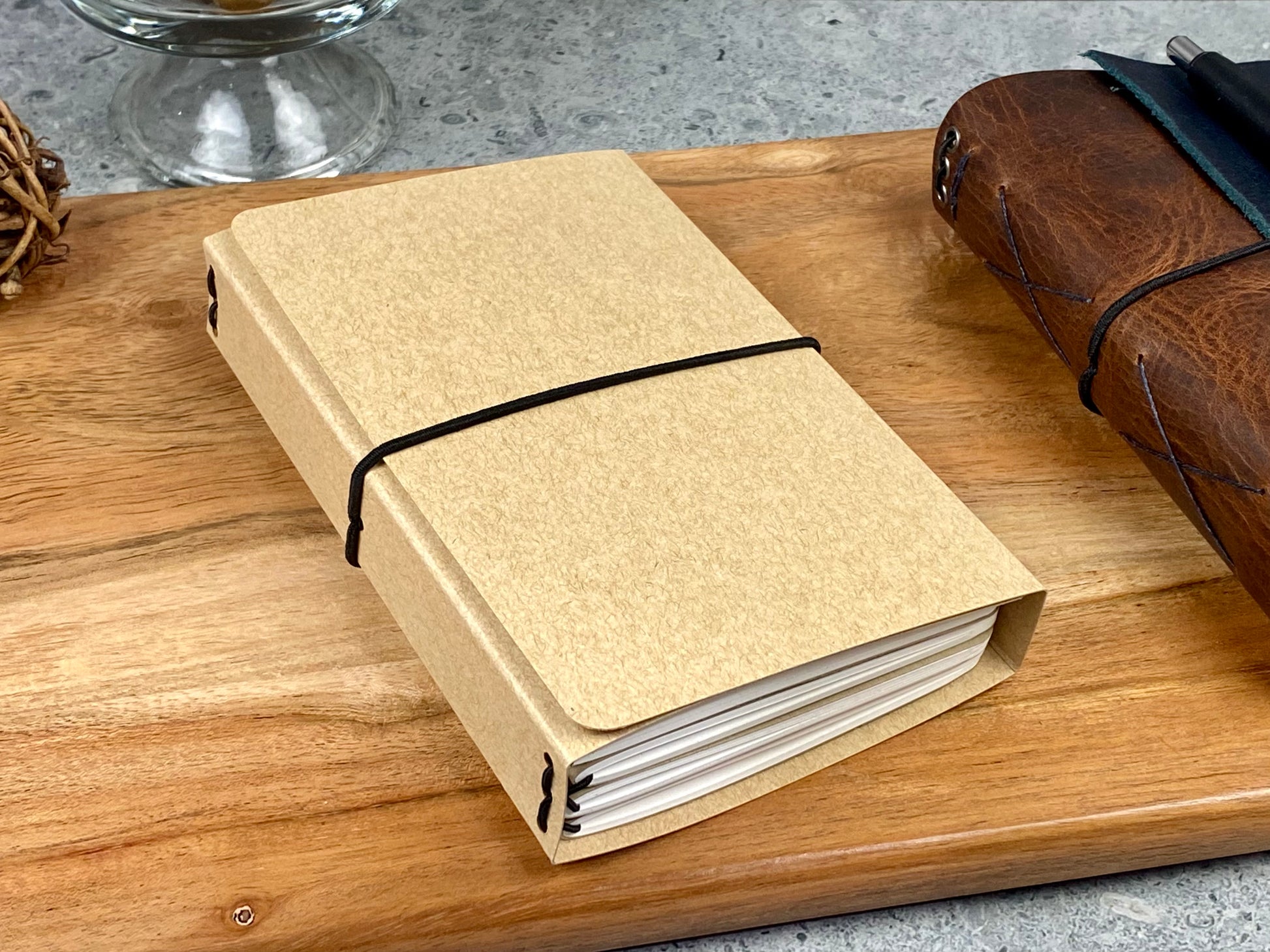 Keep your Scroll & Ink journal practice going with these authentic refill booklets. Each set contains four booklets with blank, opaque pages and kraft covers perfect for dating and titling. Want to keep them organized and protected? Our optional Storage Jacket holds up to four booklets in a durable cardstock cover that stands on your bookshelf. Personalize the spine or front cover however you'd like. It's a great way to protect unused booklets or catalog your prior notes.